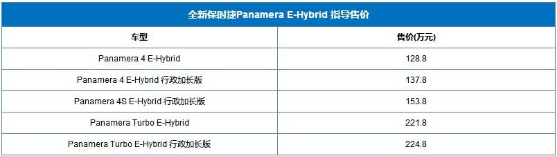 全新保時(shí)捷Panamera E-Hybrid售價(jià)公布 售價(jià)為128.8-224.8萬