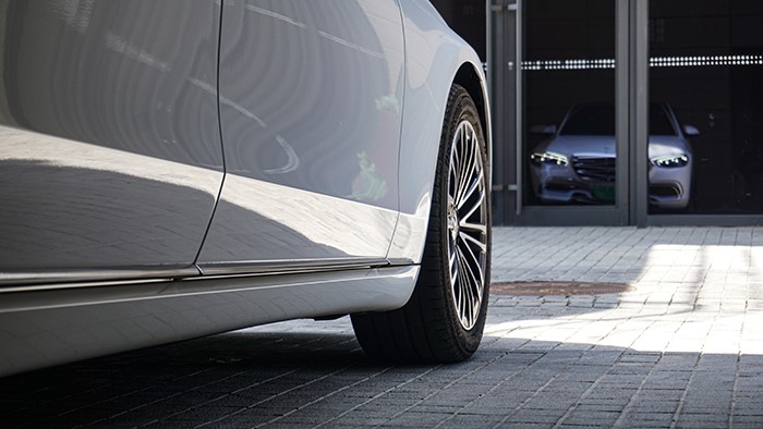 用曲線的美感勾勒出新款奔馳S450eL極為優(yōu)雅大氣的側顏;下滑的C柱與車尾一筆描繪的線條宛如溜背轎跑車般的既視感;車窗外沿采用鍍鉻飾條修飾,體現出莊重典雅的氣質。