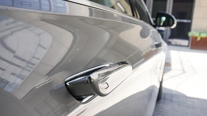 整車依然保持穩(wěn)重豪華的商務車氣息,新車的充電接口位于車輛的右后方。感應式的伸縮門把手,造型別致。