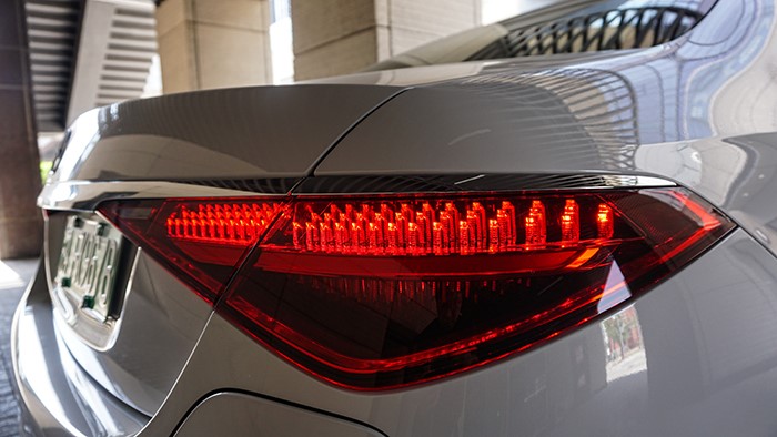 大燈廓形經歷了從圓形、方形再到三角形的轉變,尤其對手都在用貫穿式尾燈的風潮下,奔馳依舊特立獨行地采用三角形設計元素。