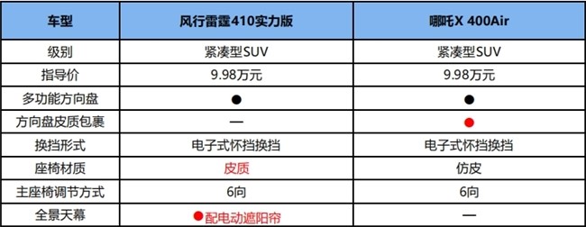 不難看出,在內(nèi)飾上,風行雷霆410實力版的用料更足,帶來了比哪吒X 400Air更強的高級感。