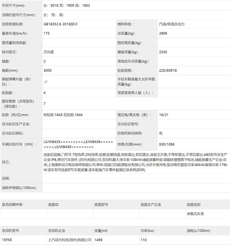 動力方面,新車搭載1.5T插混,其中發(fā)動機最大功率110kW,電機最大功率為176kW。