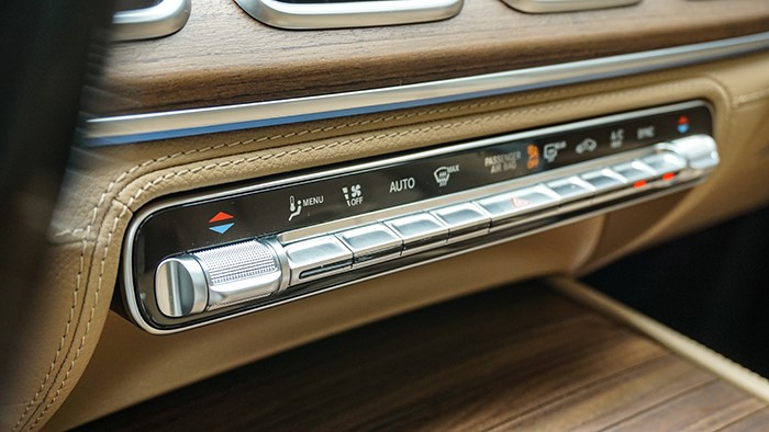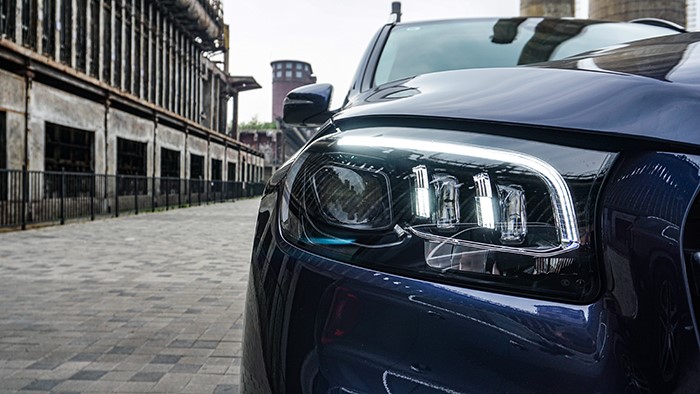 標(biāo)志性的超大三叉星LOGO鑲嵌在立體式進(jìn)氣格柵中央,彰顯品牌身份。從車身尺寸上已經(jīng)全面超越邊上的奔馳GLE,因此營(yíng)造的氣場(chǎng)也更加強(qiáng)烈。