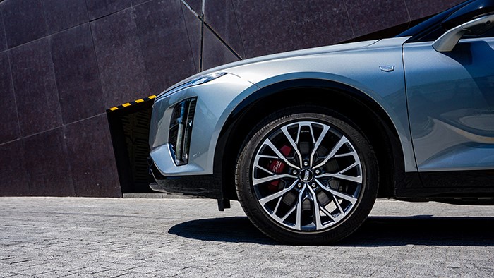 輪轂設計:凱迪拉克GT4配備了極具科技感和運動感的19寸輪轂,采用獨特的造型配合大紅色剎車卡鉗,提升了整體的視覺吸引力。輪胎規(guī)格為245/45 R19。