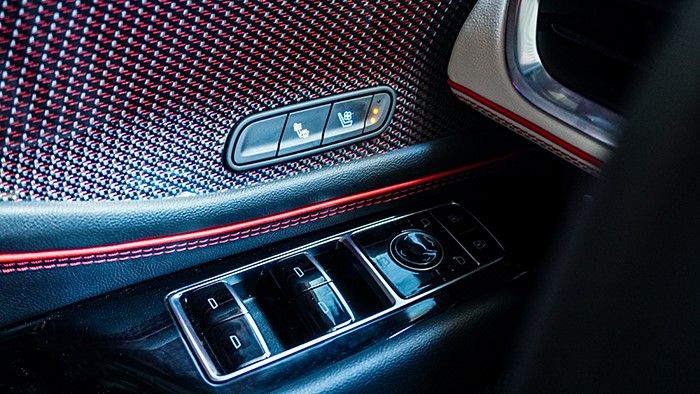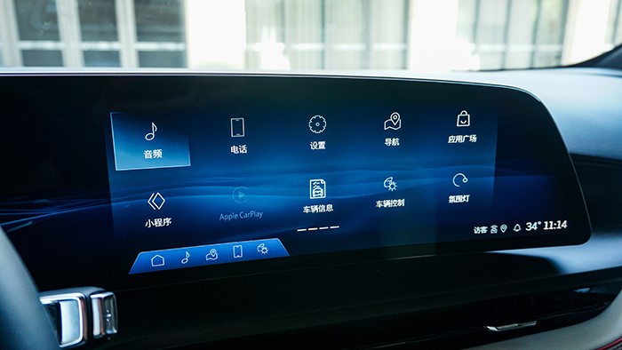 車輛環(huán)境照明設計采用環(huán)繞式氛圍燈,營造出舒適的駕乘氛圍,照明效果支持多種顏色和亮度調(diào)節(jié)。