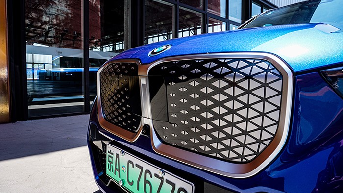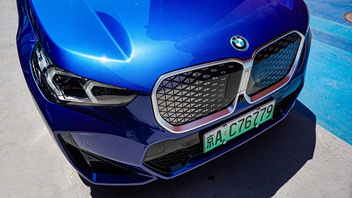 中網(wǎng)改為全封閉樣式,這也是新能源寶馬的全新設(shè)計(jì)要素,銀色的邊框線條讓前臉視覺(jué)效果更寬,側(cè)面看車(chē)身車(chē)頭更加厚重。