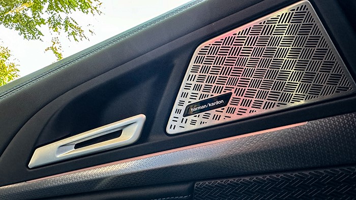 中控液晶屏為10.7英寸,功能上十分豐富,語(yǔ)音互動(dòng)操作也很便捷。車(chē)輛還配備了12喇叭的Harman/Kardon哈曼卡頓音響。