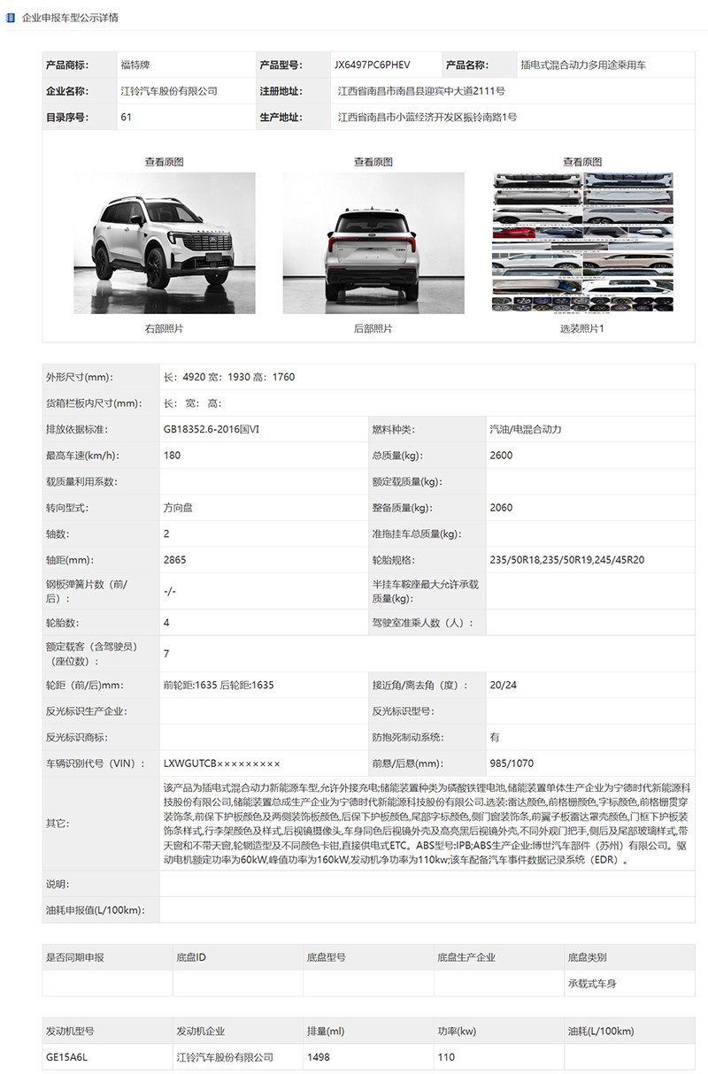 動力方面,新車首次搭載插混系統(tǒng),其中1.5T發(fā)動機(jī)最大功率110kW,電機(jī)最大功率160kW。新車提供容量為18.404kWh的磷酸鐵鋰電池,CLTC純電續(xù)航為90km。