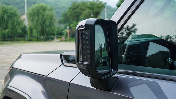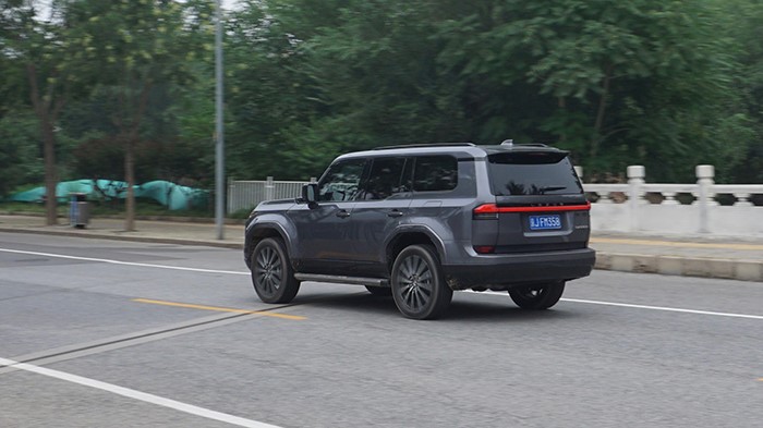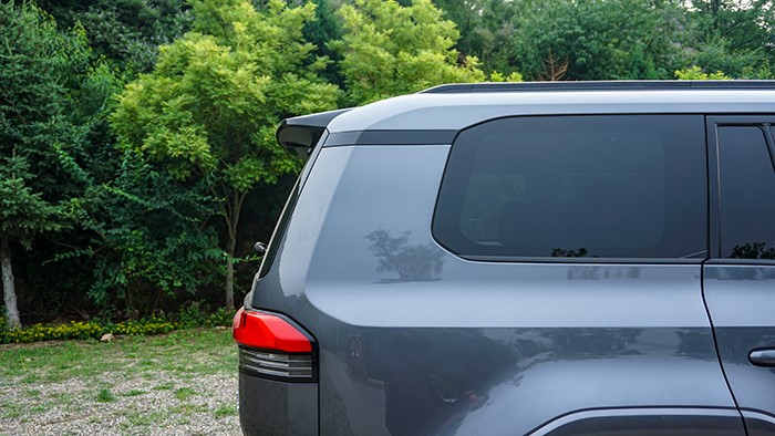 車身側(cè)面輪廓線條簡潔利落,展現(xiàn)出SUV的穩(wěn)重感和力量感。車窗下沿做了階梯式設(shè)計(jì),方便駕駛員越野時(shí)觀察路況。車身尺寸為4960×1980×1935mm,軸距達(dá)到了2850mm。