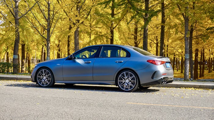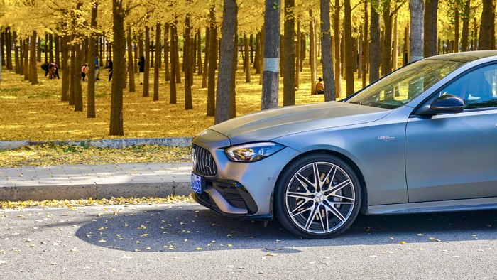AMG C43的輪廓設(shè)計凸顯了運動轎車的特性,配備了大尺寸的AMG輪轂,搭配運動型側(cè)裙,營造出強烈的運動氛圍。