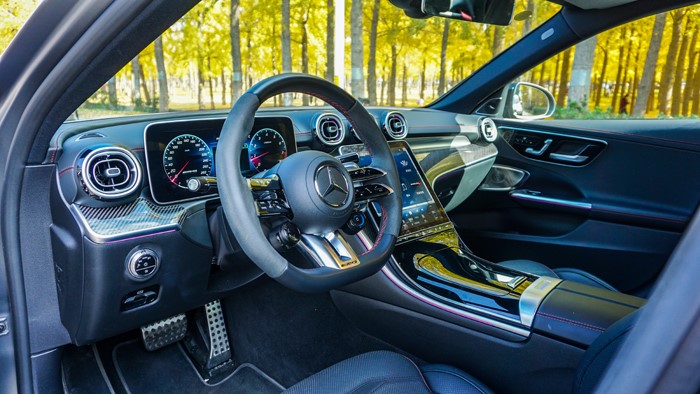 奔馳AMG C43的內(nèi)飾設(shè)計充分體現(xiàn)了豪華與運動的完美結(jié)合,旨在為駕駛者和乘客提供極致的舒適感和科技感。
