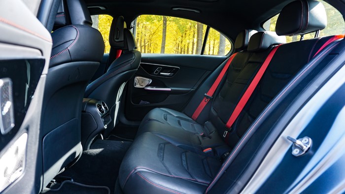 AMG C43配備了運動型座椅,提供出色的支撐性和舒適性,亮眼的紅色安全帶也是AMG車型特有的配置。