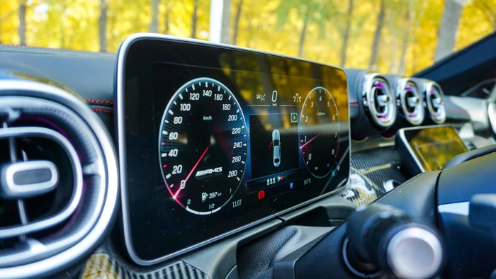 儀表盤采用數(shù)字化設(shè)計,提供清晰且易于讀取的信息,駕駛者可以通過多功能方向盤輕松切換顯示內(nèi)容。手感極佳的AMG方向盤帶有快速切換單元,可以調(diào)節(jié)懸架軟硬、駕駛模式,增加了駕駛樂趣。