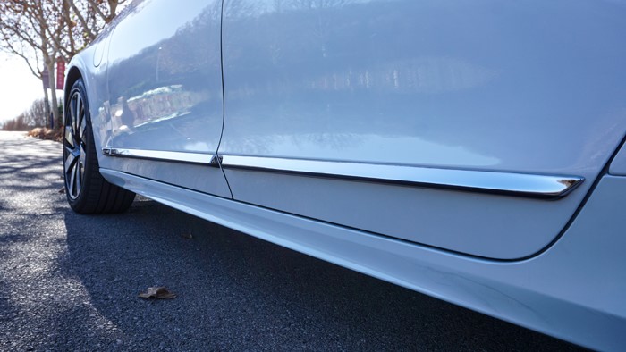 沃爾沃S90的安全確實(shí)非同凡響。首先說(shuō)車(chē)身安全方面。它采用比競(jìng)爭(zhēng)對(duì)手更大的硼鋼材料,面積達(dá)到37.6%,這是以硼為主要合金化元素的鋼 ,其硬度可達(dá)到1,300~1,500Mpa,是一般車(chē)身鋼材硬度的4~5倍。在同等強(qiáng)度下,質(zhì)量要輕15%。左前翼子板上的充電口證明這是臺(tái)插混車(chē)型。