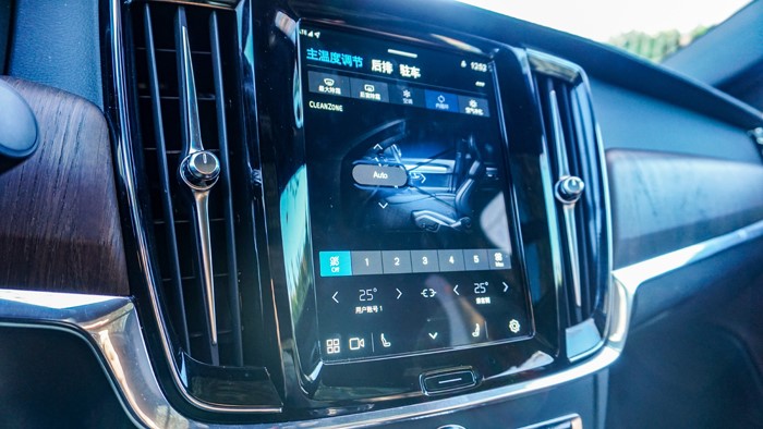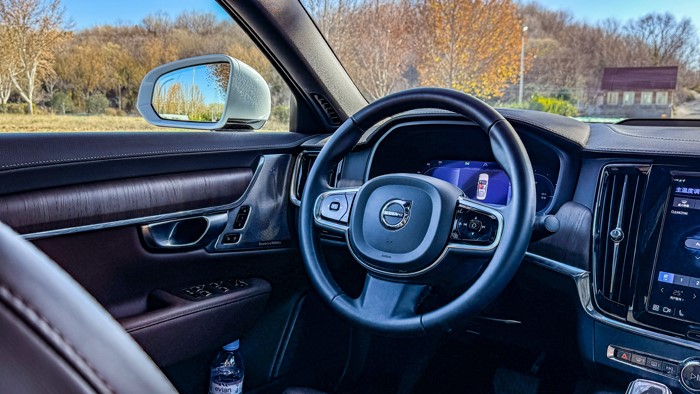 這臺(tái)沃爾沃S90插電式混動(dòng)使用了大量的金屬裝飾面板配合全黑內(nèi)飾,顯得簡(jiǎn)約且豪華。全液晶儀表盤(pán)閱讀起來(lái)十分清晰。