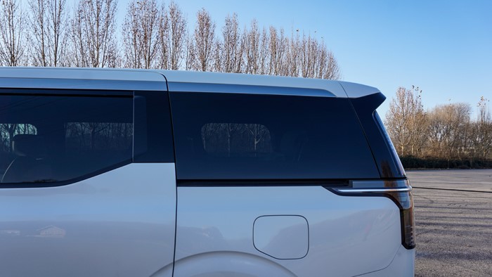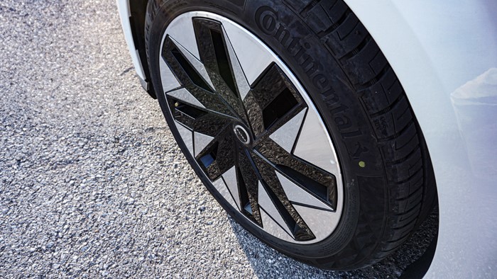 車身側(cè)面線條簡潔利落,流暢的車頂線條與傾斜的后車窗相得益彰,營造出動感的視覺效果。在三圍方面:5206×2024×1859mm,軸距3205mm。該車選配了21寸的大型雙色輪轂,采用馬牌輪胎,靜音效果不錯。