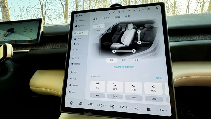 車輛沿用了蔚來ES8上的女王模式副駕,這個副駕真的是創(chuàng)意加上實用的典范。女王副駕模式有多種姿勢可選,例如零重力、舒睡等,讓副駕駛很是享受。