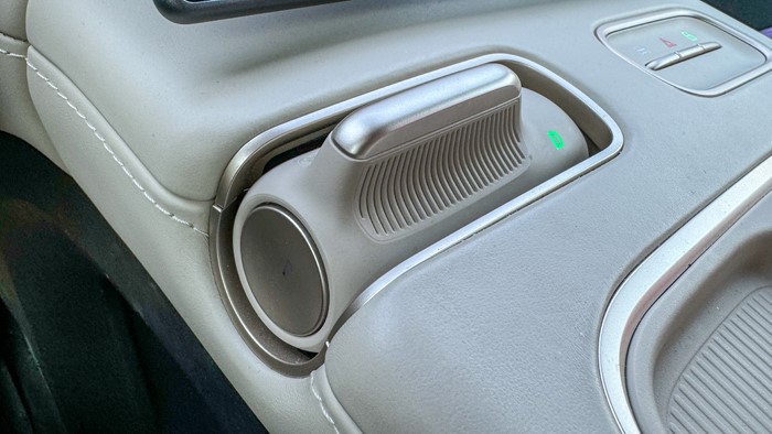 蔚來ES6依然采用了沒有空擋的設(shè)計,車只剩下前進(jìn)、后退和停車三種模式,再也不用糾結(jié)用空擋還是P擋了。換擋桿后方還設(shè)計了方便存放手機的無線充電區(qū)域及水杯架。
