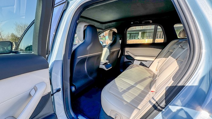 ES6的座椅非常寬厚,坐進(jìn)去很有包裹感,而且主副駕都有電動按摩、加熱和通風(fēng)功能,非常舒服。車頂用料也比較考究,比如車頂?shù)某w絨材質(zhì)觸感比非常柔和,頗有高級感。