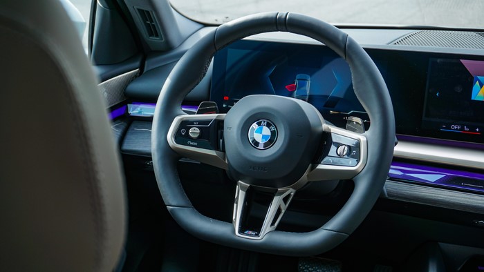 這臺(tái)車選裝了20寸雙色動(dòng)感輪轂(原配為245/45 R19),前后鴛鴦?shì)喬?,?guī)格為前245/40 R20,后275/35 R20。總體來說,寶馬5系轎車的外觀設(shè)計(jì)融合了未來主義的元素和寶馬品牌的傳統(tǒng)特色,展現(xiàn)出獨(dú)特的時(shí)尚感和科技感。無論是車身線條還是細(xì)節(jié)處理,都體現(xiàn)了寶馬在設(shè)計(jì)上的用心與創(chuàng)新,為用戶帶來了歡暢的駕駛體驗(yàn),操控的確還是寶馬的強(qiáng)項(xiàng)。