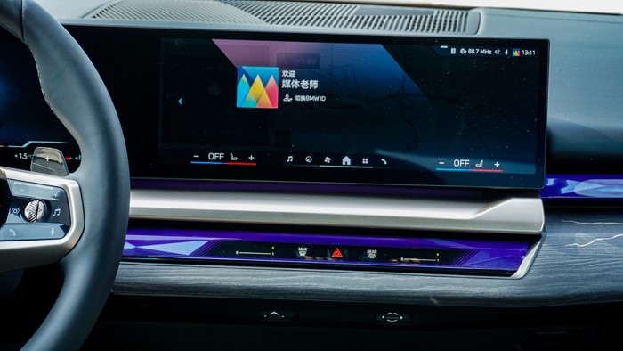 座艙革新:12.3英寸液晶儀表與14.9英寸中控屏組成的一體式懸浮曲面屏(分辨率達(dá)2000×1200),配合iDrive 9系統(tǒng)與高通驍龍8155P芯片,實(shí)現(xiàn)0.3秒級(jí)語(yǔ)音響應(yīng)速度。駕駛者可以通過觸控屏幕或語(yǔ)音控制系統(tǒng)輕松操作車輛的各項(xiàng)功能,實(shí)現(xiàn)智能化駕駛體驗(yàn)。