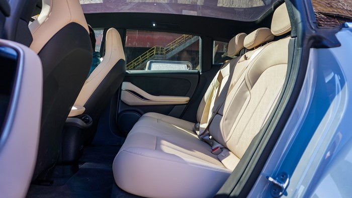 展開尾門,門框上還有BLUE SKY COMING的設(shè)計(jì)彩蛋。后備箱的內(nèi)部非常平整,后座可424分別放倒,提升裝載能力。整體而言,ET5T的外觀不僅展現(xiàn)了蔚來對(duì)細(xì)節(jié)的極致追求,更傳達(dá)出一種未來出行的美好愿景,設(shè)計(jì)上很容易讓人接受,沒有短板。
