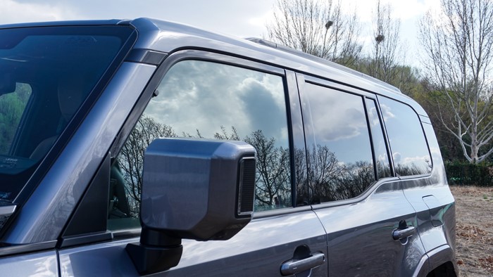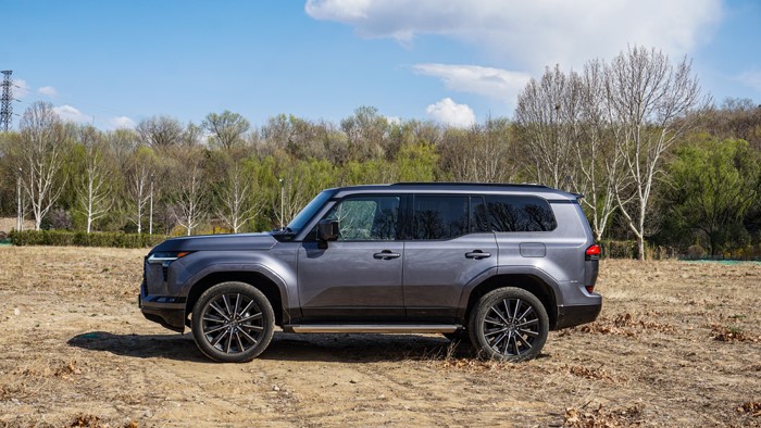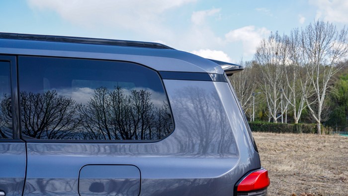 車身側(cè)面輪廓線條簡(jiǎn)潔利落,展現(xiàn)出SUV的穩(wěn)重感和力量感。車窗下沿做了階梯式設(shè)計(jì),方便駕駛員越野時(shí)觀察路況。車身尺寸為4960×1980×1935mm,軸距達(dá)到了2850mm。