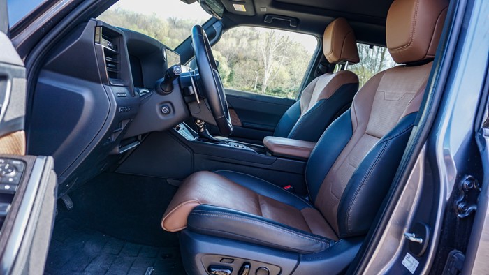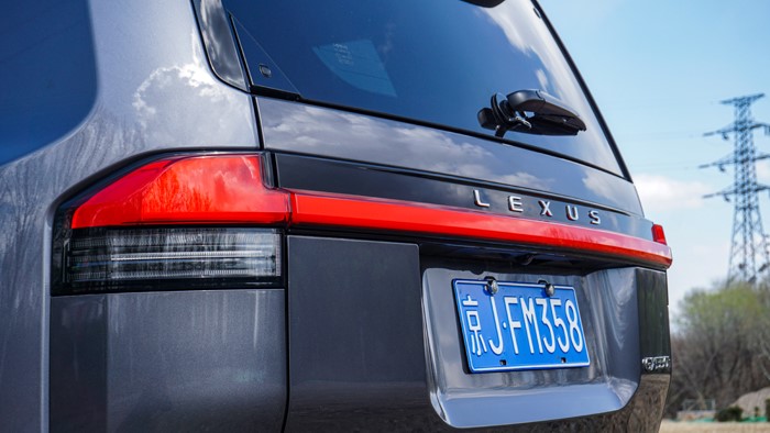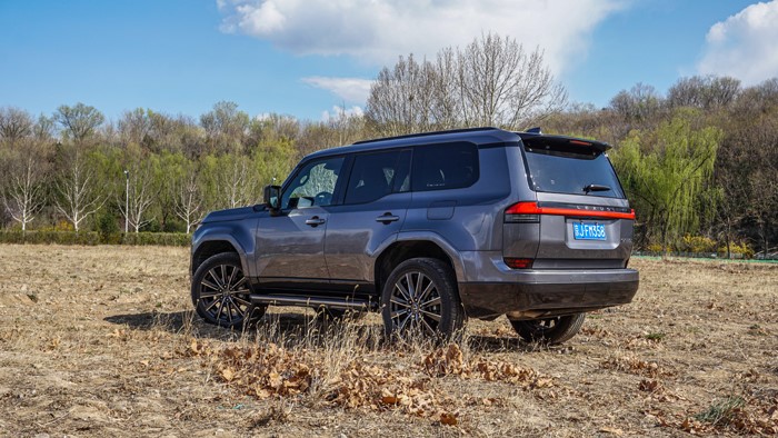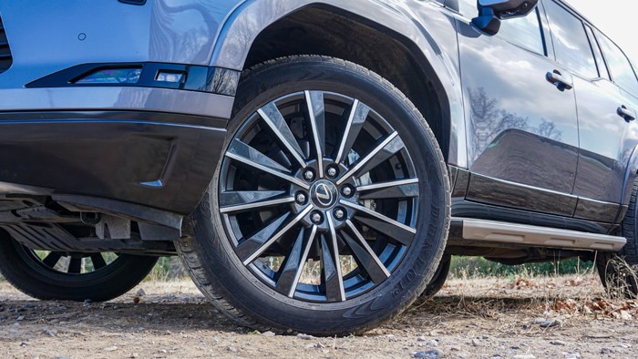 GX550h凌峰版使用了22寸輪轂,輪胎規(guī)格為265/50 R22,品牌為鄧祿普,作為一臺(tái)硬派越野車實(shí)屬不小。大尺寸的車輪增加了整體的視覺(jué)沖擊力,同時(shí)也提升了車輛的運(yùn)動(dòng)感和豪華感。為了上車方便,腳踏板也是原廠配置。