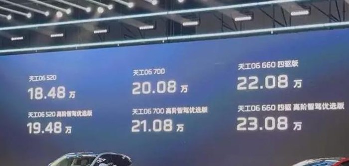 天工06的預售價格為18.48萬元-23.08萬元,價格相對競品來說還是十分有誠意的。