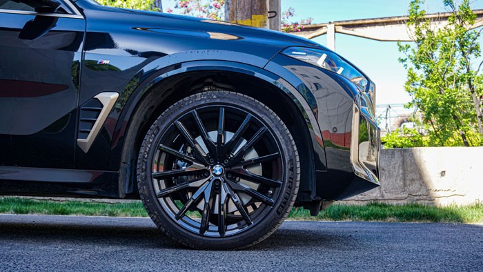 黑焰限量版xDrive 40Li車型標(biāo)配22英寸輪轂,配合前275/35 R22,后315/30 R22的規(guī)格,不僅視覺效果更加大氣,操控性也進(jìn)一步提升。