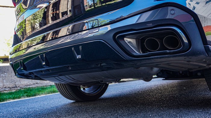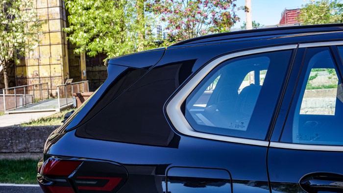 如果你不仔細(xì)觀察后門,還真是不好分辨這是臺國產(chǎn)寶馬X5,但只要你留意一下后門的長度,確實(shí)是很寬大。全面黑化的尾部配合四出排氣實(shí)在是帥氣十足。
