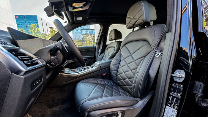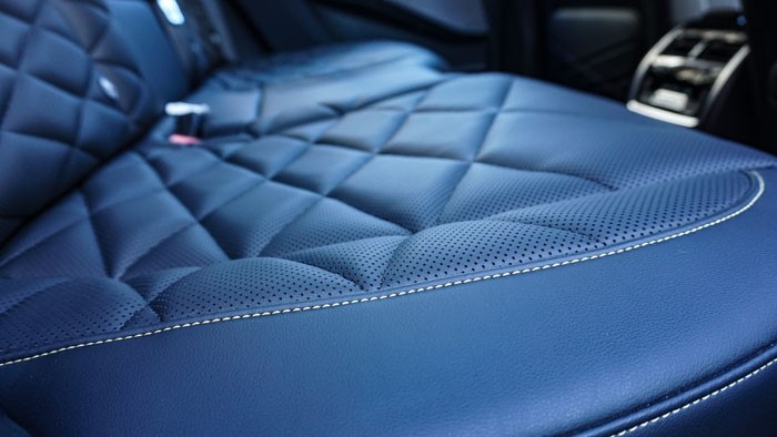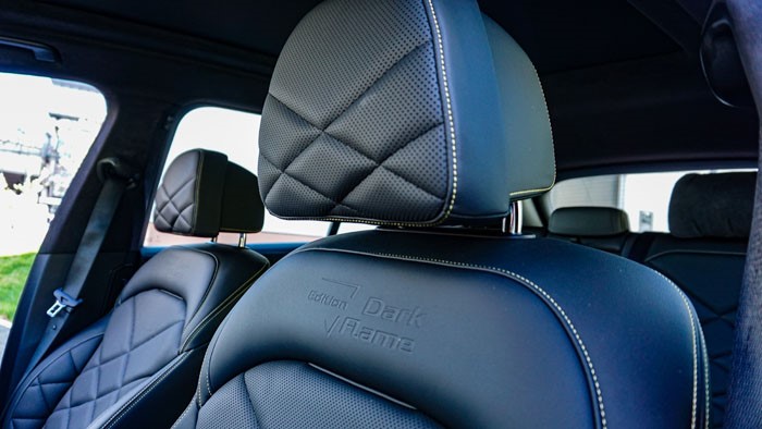 這臺X5的座椅使用黑色真皮與檸檬綠色壓線,配色高級且讓人眼前一亮,座椅靠背上也燙印了黑焰限量的徽章。乘坐感受上你會覺得柔軟與舒適,很有沙發(fā)的感覺。主/副駕駛座椅帶有14項(xiàng)電動(dòng)調(diào)節(jié)并帶有座椅通風(fēng)加熱。