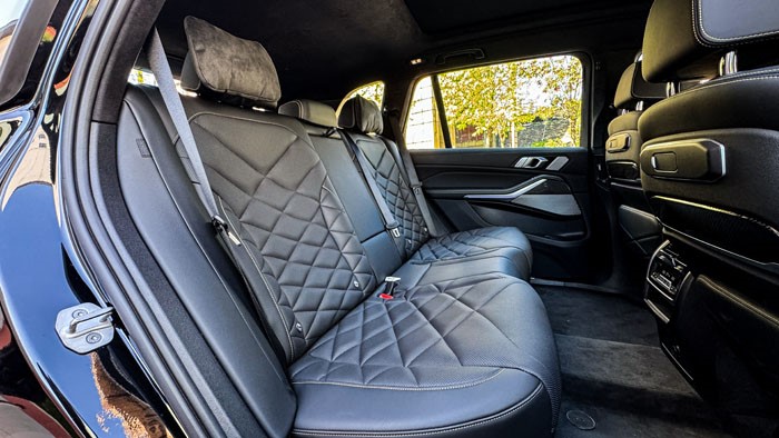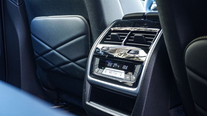 這臺黑焰限量版寶馬X5的后排空間非常寬敞。得益與國產(chǎn)軸距加長了130mm,后排縱向空間增加了130mm。后排座椅坐墊也進(jìn)行了加厚,并略微調(diào)大了后排座椅靠背的角度。這臺頂配尊享版后排座椅還帶有電加熱功能。