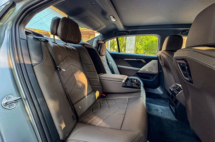 得益于長軸距,后排乘客能享受到充足的腿部空間,座椅同樣有著沙發(fā)一般的乘坐感受。