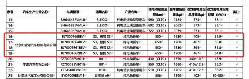 北汽極狐S3續(xù)航里程曝光 最大續(xù)航650km