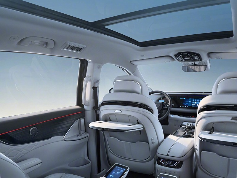 內(nèi)飾方面,現(xiàn)款采用12.3英寸液晶儀表、16.2英寸中控屏及12.3副駕娛樂屏組成的三聯(lián)屏設(shè)計(jì),搭配游艇同款方向盤,內(nèi)置高通驍龍8155芯片。車內(nèi)采用2 2 3的布局,二排配航空座椅,還提供腿托等功能。現(xiàn)款還搭載騰訊TAI 4.0智能車機(jī),提供高速NOA功能。