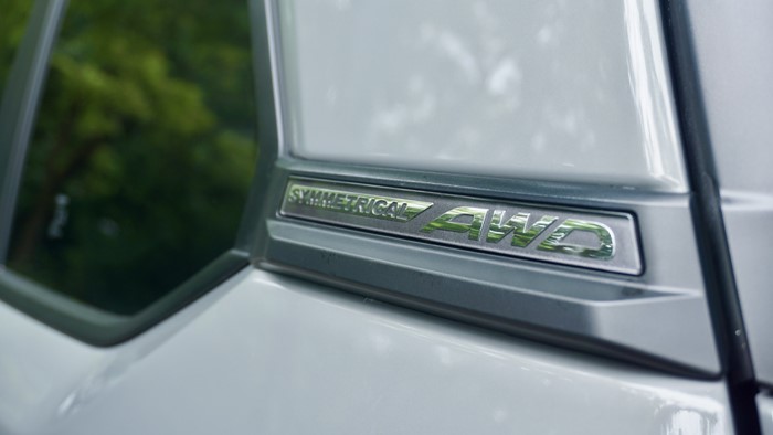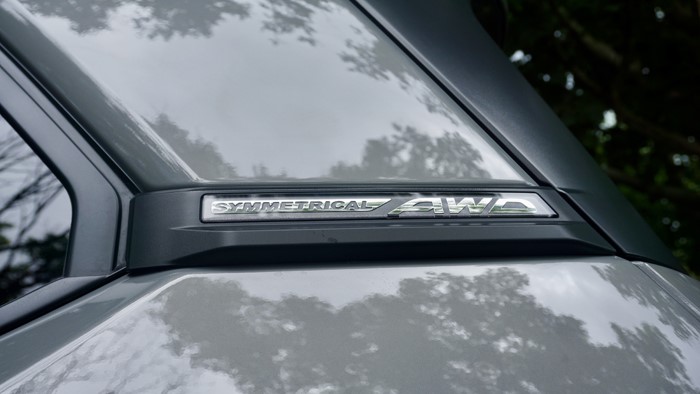 尾等中間使用了黑色裝飾線條將其連接,中間剛好襯托出車標(biāo)徽章。這條裝飾線條下是“陰刻”的森林人英文標(biāo)識。D柱上的四驅(qū)穿越徽章也是新款車的亮點之一。