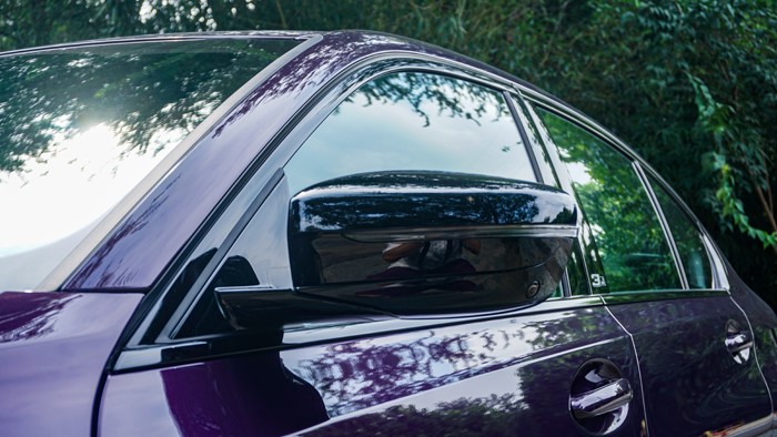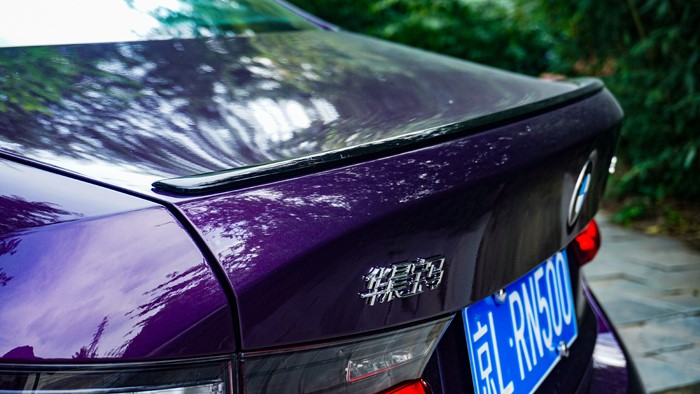 車型C柱處最新樣式的霍夫邁斯特拐角取消了長軸距版專屬的“小尾巴”造型,不再特殊。翼子板上的M運(yùn)動徽章是必不可少的元素。亮黑色窗框與外后視鏡非常符合限量版本的特性。