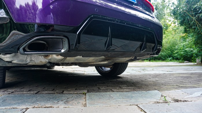 而在車尾部分,車輛采用了熏黑尾燈組,內(nèi)部“L”形的紅色燈帶營造出了凌厲的視覺效果。這個(gè)“L”形尾燈,可以看到8系尾燈影子,雙邊單出的不規(guī)則形狀排氣,非常運(yùn)動。尾部突出來的黑色小尾翼增添了精致感。