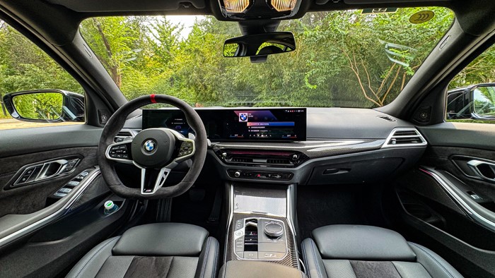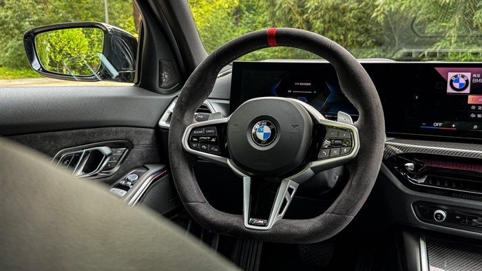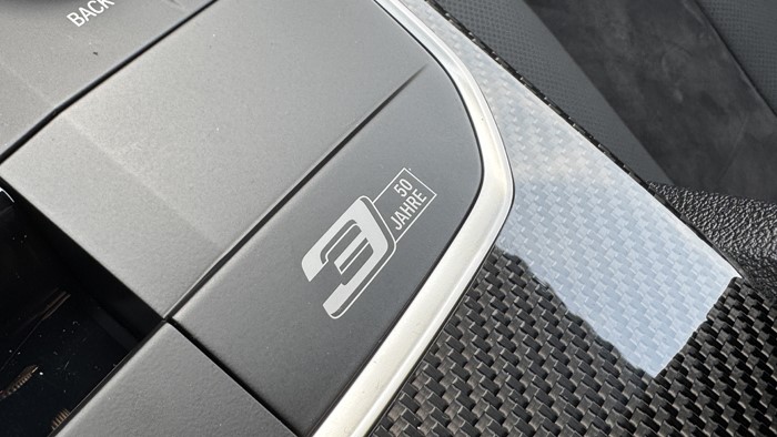懸浮式液晶屏配合全新造型的電子擋桿以及平底式式麂皮M運(yùn)動多功能方向盤,讓新車看上去十分年輕、運(yùn)動,換擋桿區(qū)域的裝飾面板采用碳纖維面板,并設(shè)計(jì)有50周年限量版徽章,視覺和觸感上質(zhì)感一流。