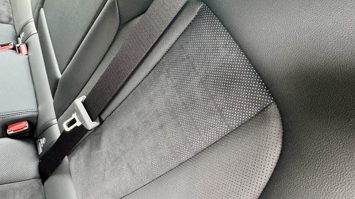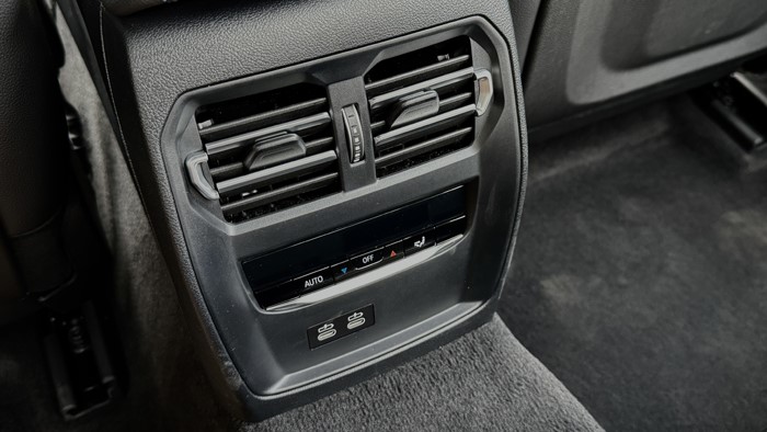 當(dāng)坐上3系的后排那一刻,最大的感受是出奇的舒服,座椅很柔軟,后排座椅坐姿幾乎可做到“半躺”,靠背中央處有暗暗的藍(lán)色花紋很有質(zhì)感。后排空調(diào)出風(fēng)口處配置了兩個(gè)C口充電口,中央扶手處有2個(gè)水杯架。