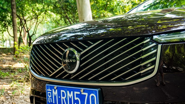 雷神之錘的大燈是沃爾沃家族的經(jīng)典設計語言,中網(wǎng)格柵采用全新交匯的樣式,辨識度非常高。中網(wǎng)邊框采用極窄的風格,兩端與車頭大燈交匯,扁平化風格很明顯,也使車頭看上去更寬大了。總的來說新款S90的車頭看上去年輕了不少。