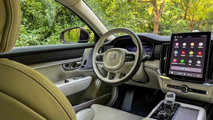 新款S90內(nèi)飾升級也是可圈可點的,特別是11.2英寸中央觸摸顯示屏,采用LCD(液晶顯示技術(shù)) LCF(光線控制膜防反射涂層),可提供超清畫質(zhì) 防止光線反射和炫光 紅外線觸控技術(shù)。支持點擊、劃動、拖動、手寫、放大/縮小,(多點觸控) 集合了駕駛、安全、娛樂的全部功能按鍵,同時包含空調(diào)與座椅控制,非常方便。 支持個性化定制界面,整合蘋果Carplay擴展 ,能將蘋果設備的顯示界面同步投射至中央顯示屏 。