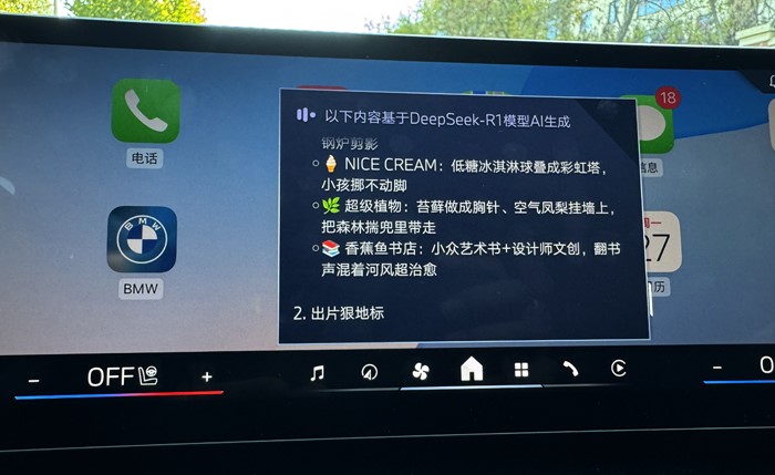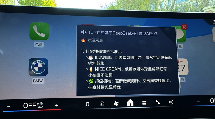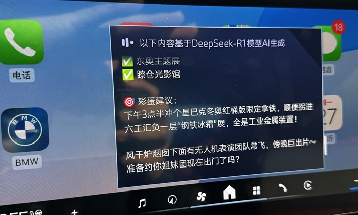 用語音喚醒寶馬車機(jī),開啟DeepSeek:你可以直接問關(guān)于首鋼園永定河市集的信息。