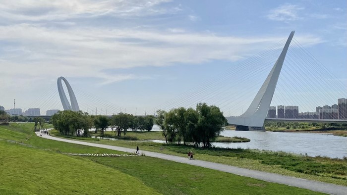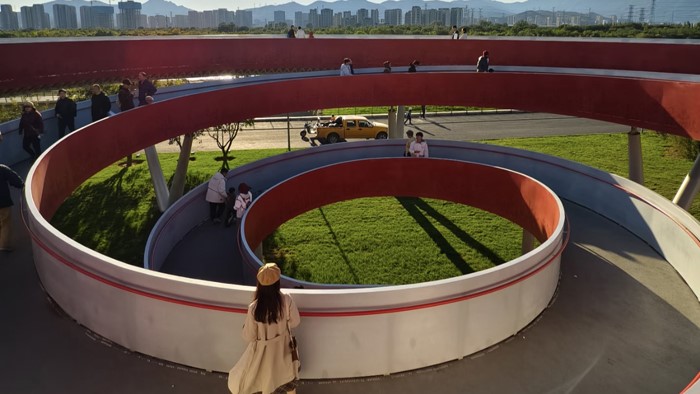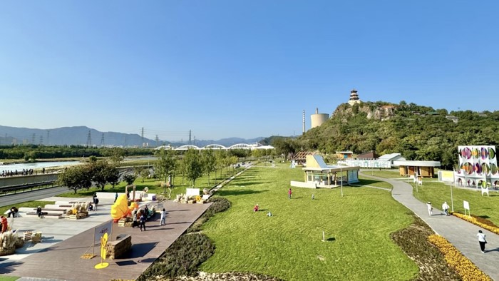我導(dǎo)航的是首鋼香格里拉酒店停車場,這里距離永定河大集非常近。停好車,沿著路標(biāo)一直向河邊步行,曬著溫暖的陽光,沿路風(fēng)景讓人心情很放松。