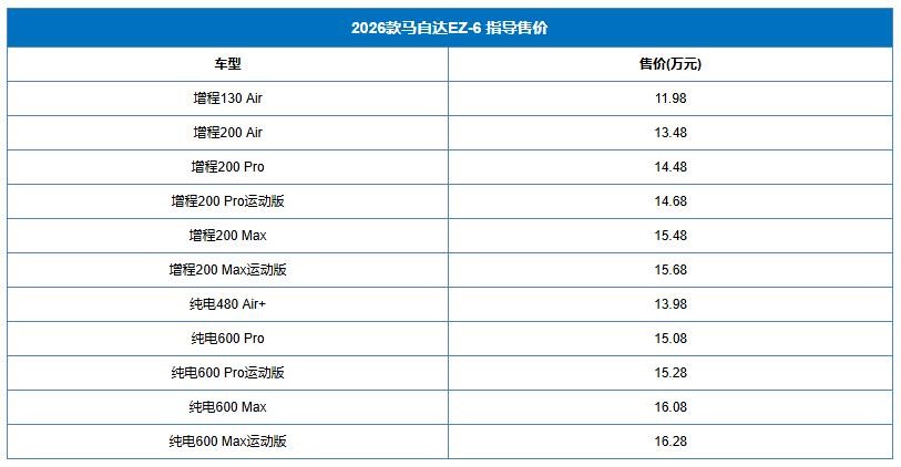長安馬自達(dá)2026款馬自達(dá)EZ-6上市 售價(jià)11.98-16.28萬
