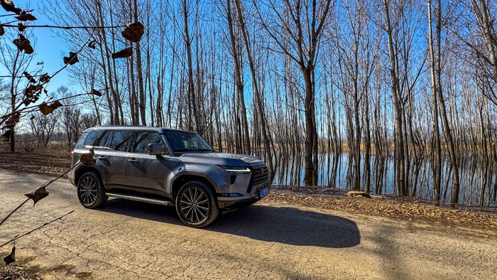 在北京的初冬開著雷克薩斯GX550h來一場說走就走的旅途去看看沿途的風(fēng)景。雷克薩斯GX550h采用了雷克薩斯家族式設(shè)計語言,前臉設(shè)計獨具特色,車身線條硬朗而流暢,展現(xiàn)出強大的氣場。新款的方正造型結(jié)合了現(xiàn)代感和經(jīng)典感,獨具品牌辨識度,跑在路上真的回頭率很高。