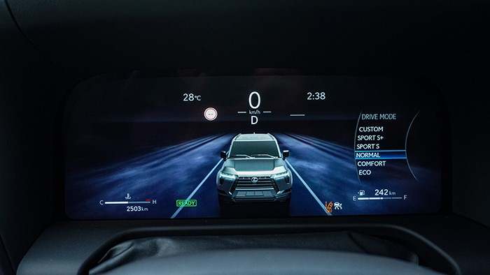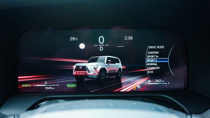 GX550h搭載一臺2.4T/L4/281馬力的混合動力系統(tǒng),電動機為54馬力。8速手自一體變速箱。車輛使用了托森式差速器。