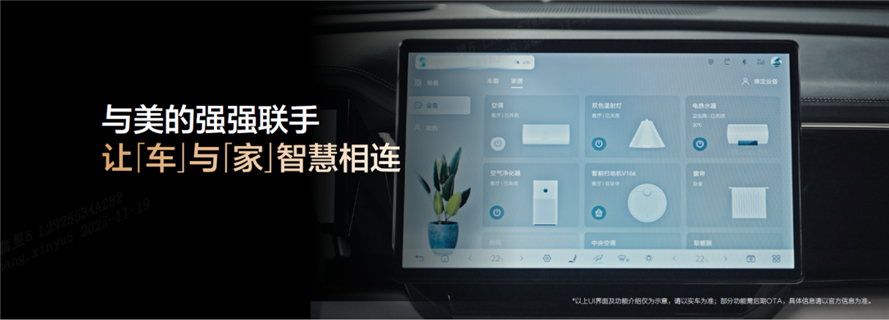比亞迪更與眾多合作伙伴聯(lián)手,帶來了唐L生態(tài)大禮包,構(gòu)建起完整的“人x車x家”生態(tài)。最為重磅的是,比亞迪與美的強強聯(lián)手,讓“車”與“家”智慧相連。用戶在家中即可通過智慧屏了解車輛狀態(tài),遠(yuǎn)程開啟空調(diào)和座椅加熱;在車上通過語音控制家中電器;當(dāng)車輛接近家時,“回家模式”自動啟動,提前打開家中燈光、暖氣等設(shè)備,實現(xiàn)無縫互聯(lián)體驗。