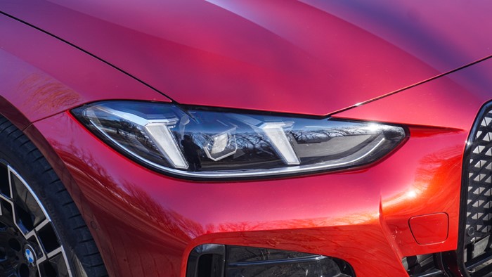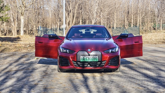 寶馬i4的外觀設(shè)計是很有視覺沖擊力的,整個車身延續(xù)了寶馬一貫的簡潔、硬朗的線條感,并加入了充滿未來感的元素。特別是車頭部分完美地融入了LED燈光和封閉式雙腎型“進氣格柵”的設(shè)計,火焰紅色油漆配合亮黑色套件令人過目難忘。